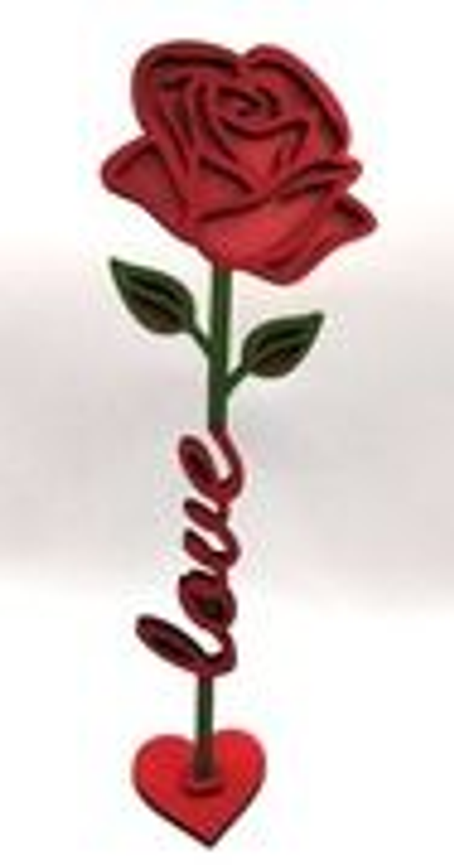 Rose en bois avec le mot "Love"